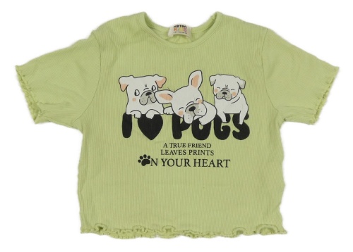 Zelenkavé rebrované crop tričko so psy