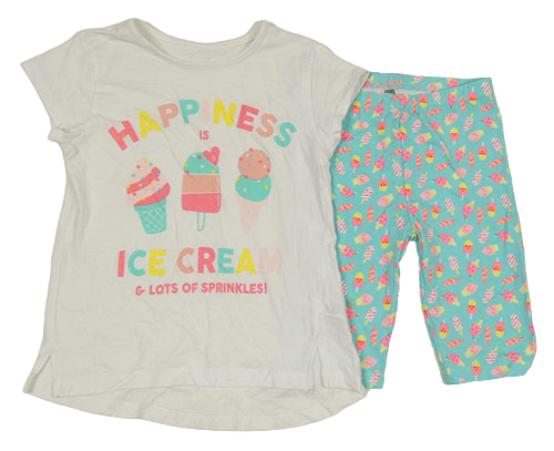 2set - Biele tričko s nápisom a zmrzlinami + tyrkysové elastické kraťasy Dunnes