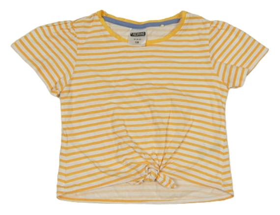 Hořčicovo-biele pruhované crop tričko s uzlom Pocopiano