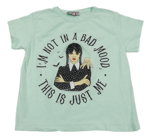 Mátové crop tričko s Wednesday a kamienkami