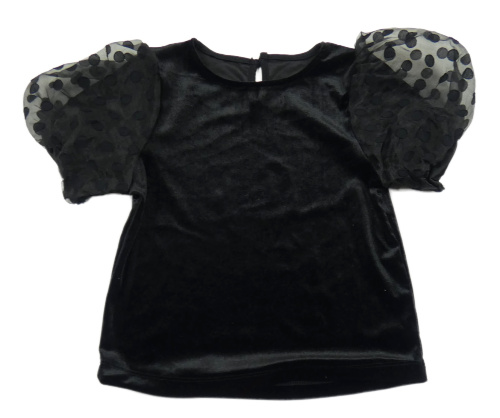 Čierne zamatové tričko s organzovými bodkovaná ymi rukávy Dunnes