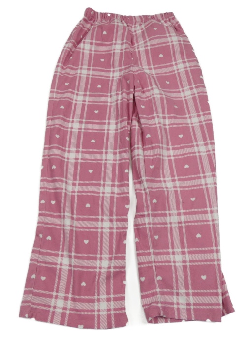 Ružovo-biele kockované pyžamové nohavice so srdiečkami