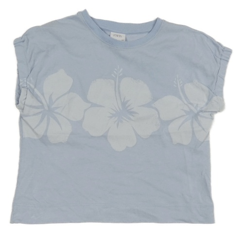 Svetlomodré oversize crop tričko s kvetmi Zara