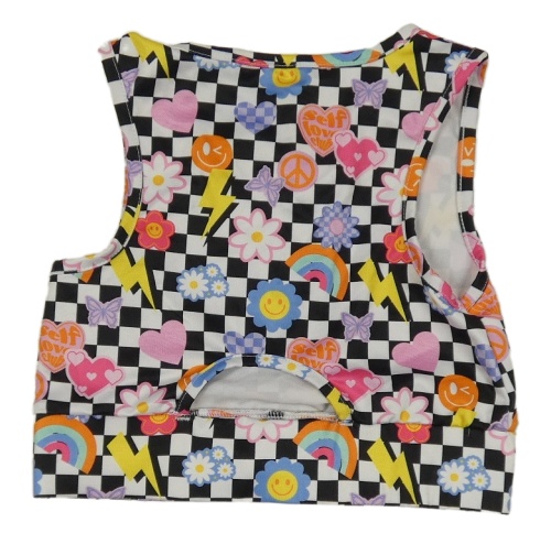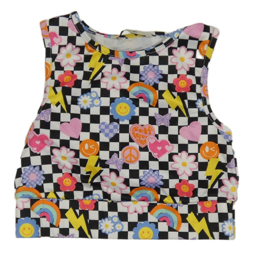 Čierno-biely kockovaný športový crop top s obrázkami George