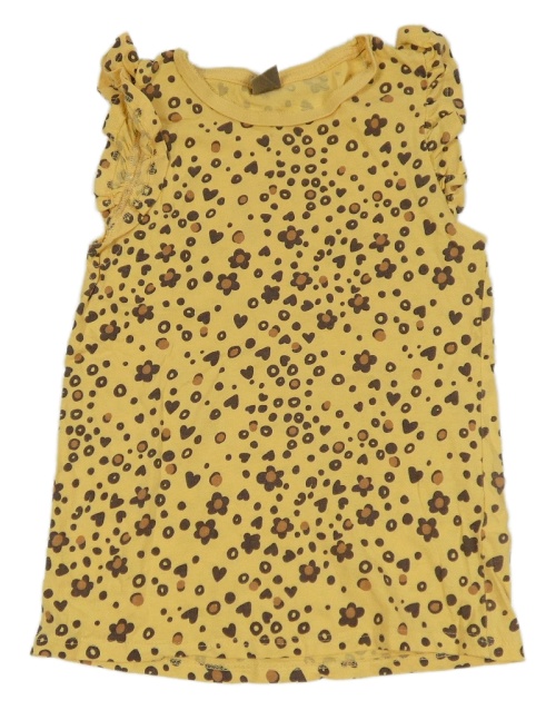 Světleoranžovo-tmavohnedé bodkovaná é tričko s kvetmi a srdiečkami a volánikmi little kids