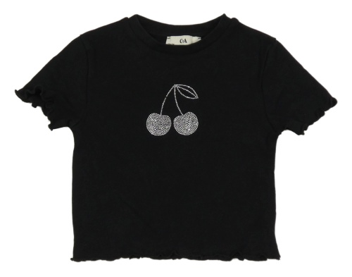 Čierne crop tričko s třešněmi C&A