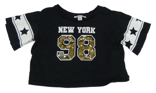 Čierne crop tričko s číslem z překlápěcích flitrů Primark