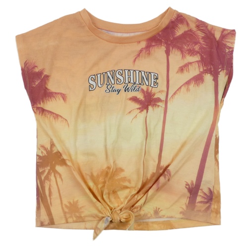 Oranžovo-žlté tričko s palmami a nápisom C&A