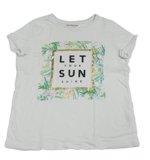 Biele tričko s nápismi a listami