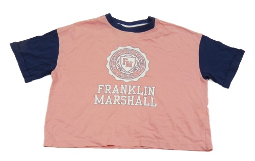 Ružovo-tmavomodré crop tričko s nápisom Franklin Marshall