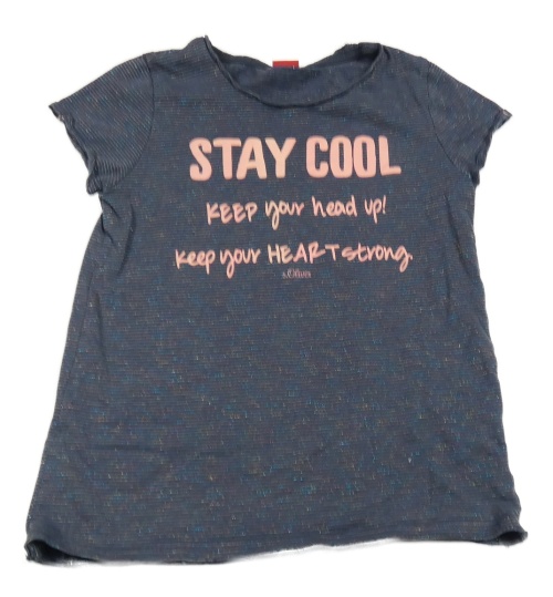 Tmavomodro-farebné pruhované trblietavé tričko s nápisom S. Oliver