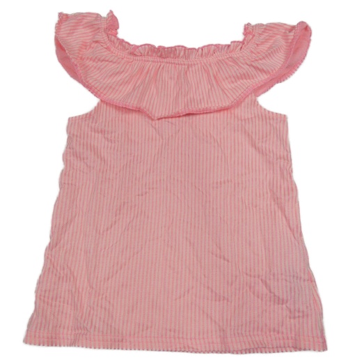 Bielo-neónově ružové pruhované tričko s volánem Y.F.K.