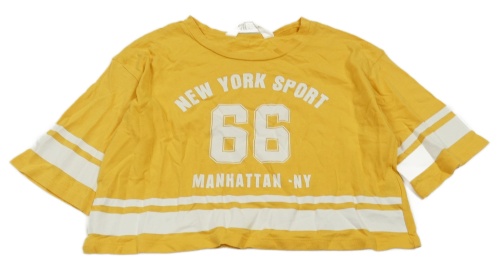 Hořčicovo-biele crop tričko s číslom a nápismi H&M