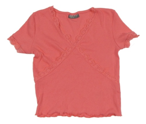 Ružové rebrované crop tričko s čipkou