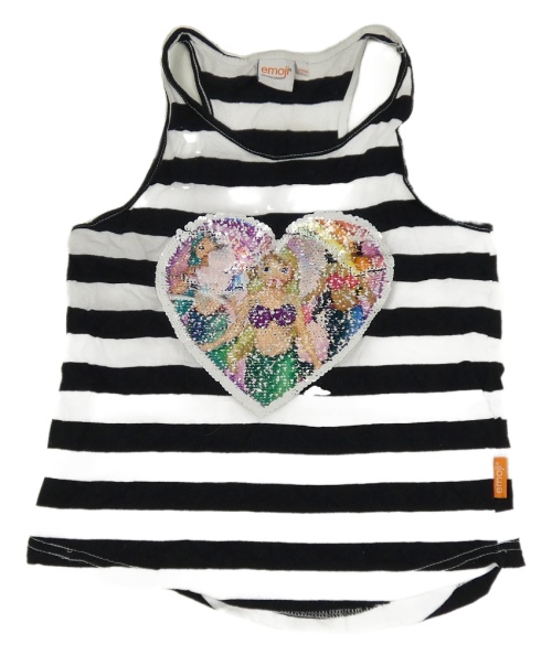 Bielo-čierny pruhovaný top so srdcem z flitrů