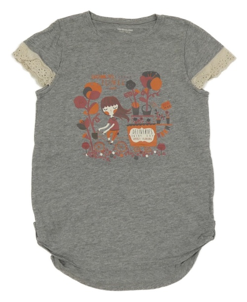 Sivé melírované tričko s dievčatkom a čipkou Vertbaudet