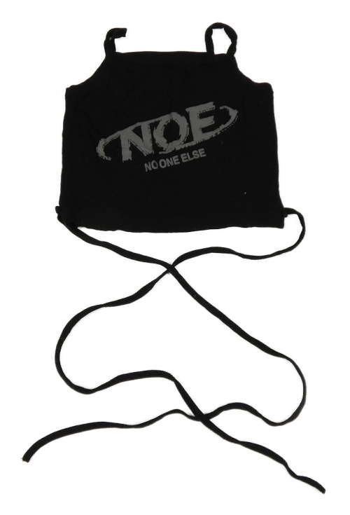 Čierny rebrovaný crop top s nápisom a šnurovaním