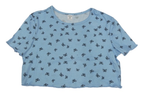 Svetlomodré crop tričko s motýly Shein
