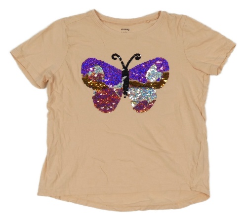 Svetloružové crop tričko s motýlkem z flitrů Sinsay