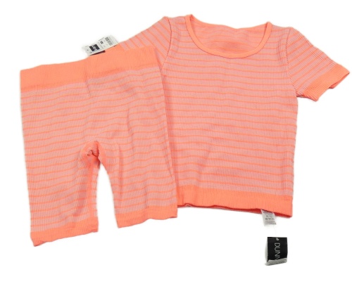 Nové - 2Set - Svetloružová -neónově korálové pruhované rebrované crop tričko + kraťasy St. Bernard