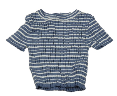 Tmavomodro-biele pruhované rebrované úpletové crop tričko H&M