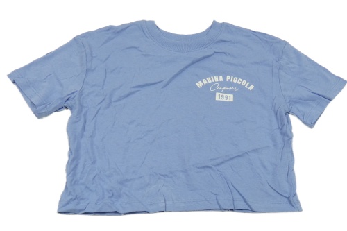 Modré crop tričko s nápisom Primark