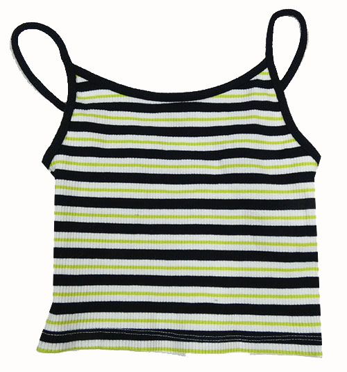 Čierno-bielo-limetkový pruhovaný rebrovaný crop top
