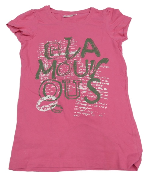 Ružové tričko s nápisom a nařasenými rukávy