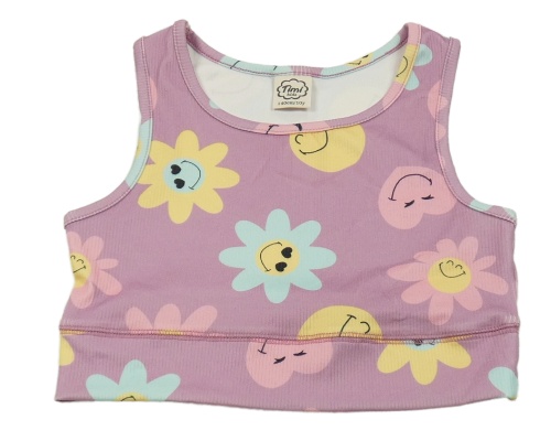 Lila rebrovaný crop top s kvetmi Timi