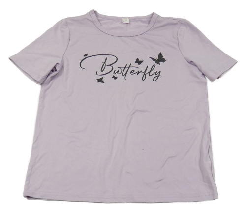 Lila tričko s nápisom a motýly Shein