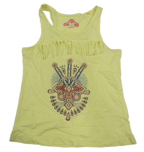 Žltý top s potlačou a strapcemi Alive