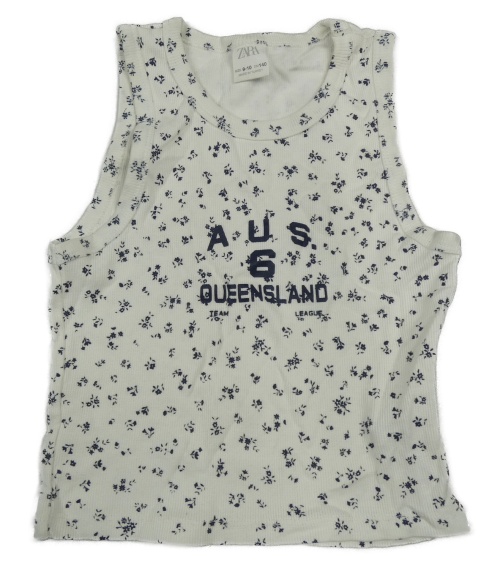 Biely rebrovaný crop top s kvetinami Zara