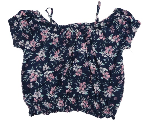 Tmavomodré kvetované crop tričko s listami Y.F.K.