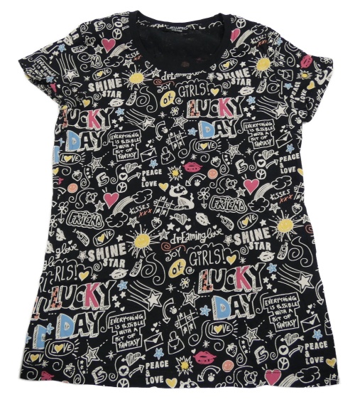Čierne tričko s nápismi a obrázkami LEWRO