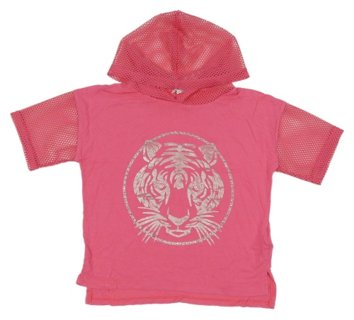 Ružové crop tričko s tigrom a sieťovanou kapucňou Bluezoo