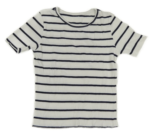 Bielo-tmavomodré pruhované rebrované crop tričko