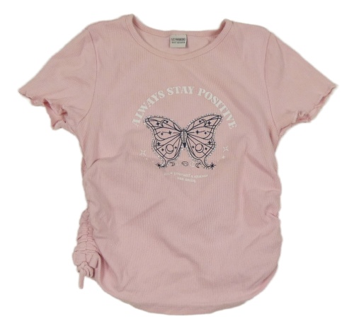 Svetloružové rebrované nařasené crop tričko s motýlom LC Waikiki