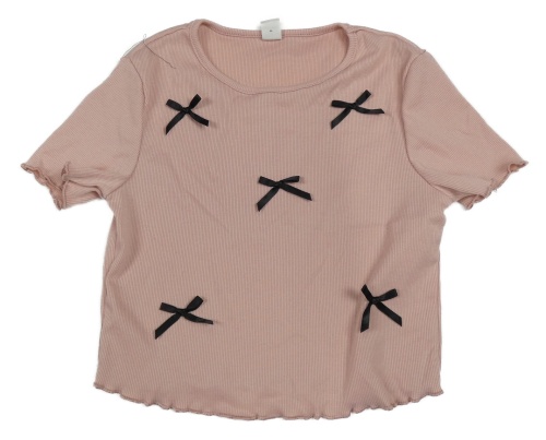 Svetloružové rebrované crop tričko s mašličkami shein
