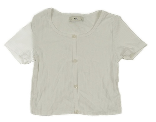 Biele rebrované crop tričko s gombíkmi