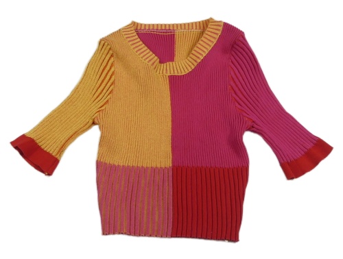 Fuchsiovo-žlto-červené rebrované svetrové crop tričko