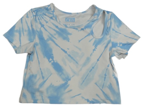 Bielo-modré batikované crop tričko s prestrihom ZARA