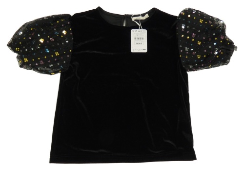 Nové - Černá sametová halena so síťovanými s balonovými sieťovanymi rukávy Sfere