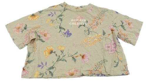 Béžové kvetované crop tričko s nápisom H&M