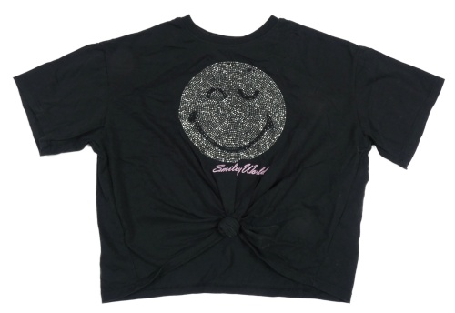Čierne crop tričko so smajlíkem z kamínků H&M