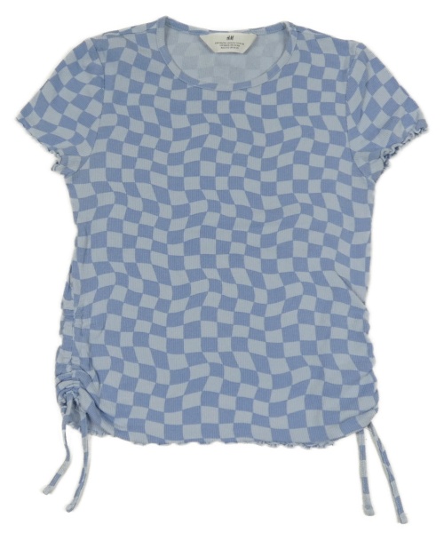 Světlemodro-modré kockované rebrované crop tričko H&M