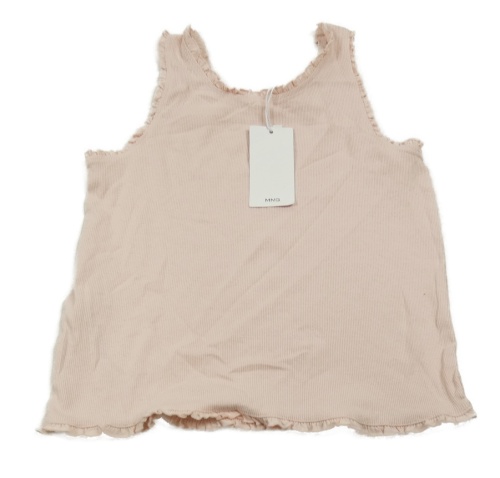 Nové - svetloružový rebrovaný crop top s volánikmi MANGO