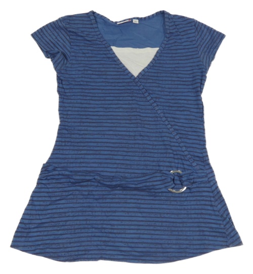 Modro-tmavomodro-bielí pruhovaná melírovaná tunika s přezkou HOT&SPICY