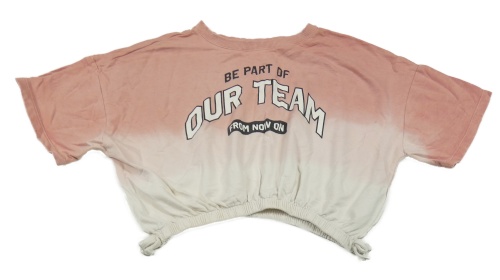 Ružovo-biele tónované crop tričko s nápisom Page one young