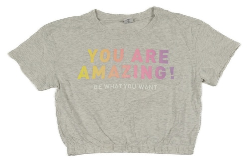 Svetlosivé melírované crop tričko s nápisom Page One Young