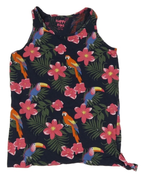 Tmavomodrý top s papoušky a kvetmi a lístečky Tchibo
